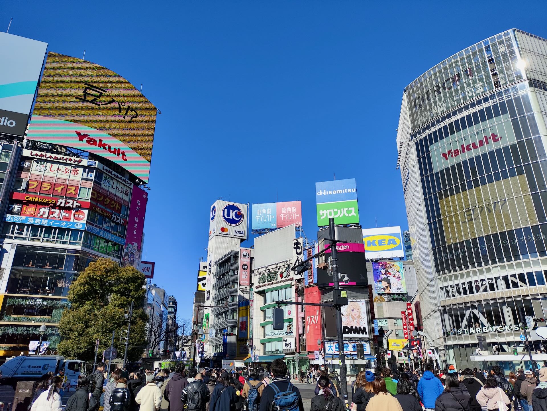 第三天,渋谷著名十字路口。不过我们去的比较早,除了主街道上的,小巷内的人并不多,很多店都才在准备开门。在涩谷有很多地下偶像演出,外表看起来是个普通盒子建筑但里面却是个 live house,这种演出通常是买一杯饮料作为入场券,再挣钱就靠偶像自己卖周边和握手券了。一般会有十几二十个团体(不少人是身兼数团)从中午一直表演到晚上。