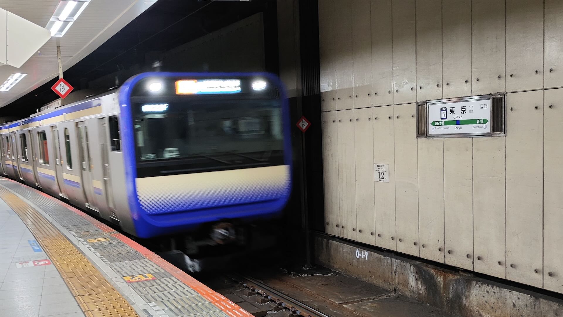 在东京站坐 JR 去镰仓,不像国内的地铁,日本很多站台基本是没有屏蔽门的(这性质上算火车,没有也正常),例如我们第一天在成田坐车就遇到了人身事故的晚点。
